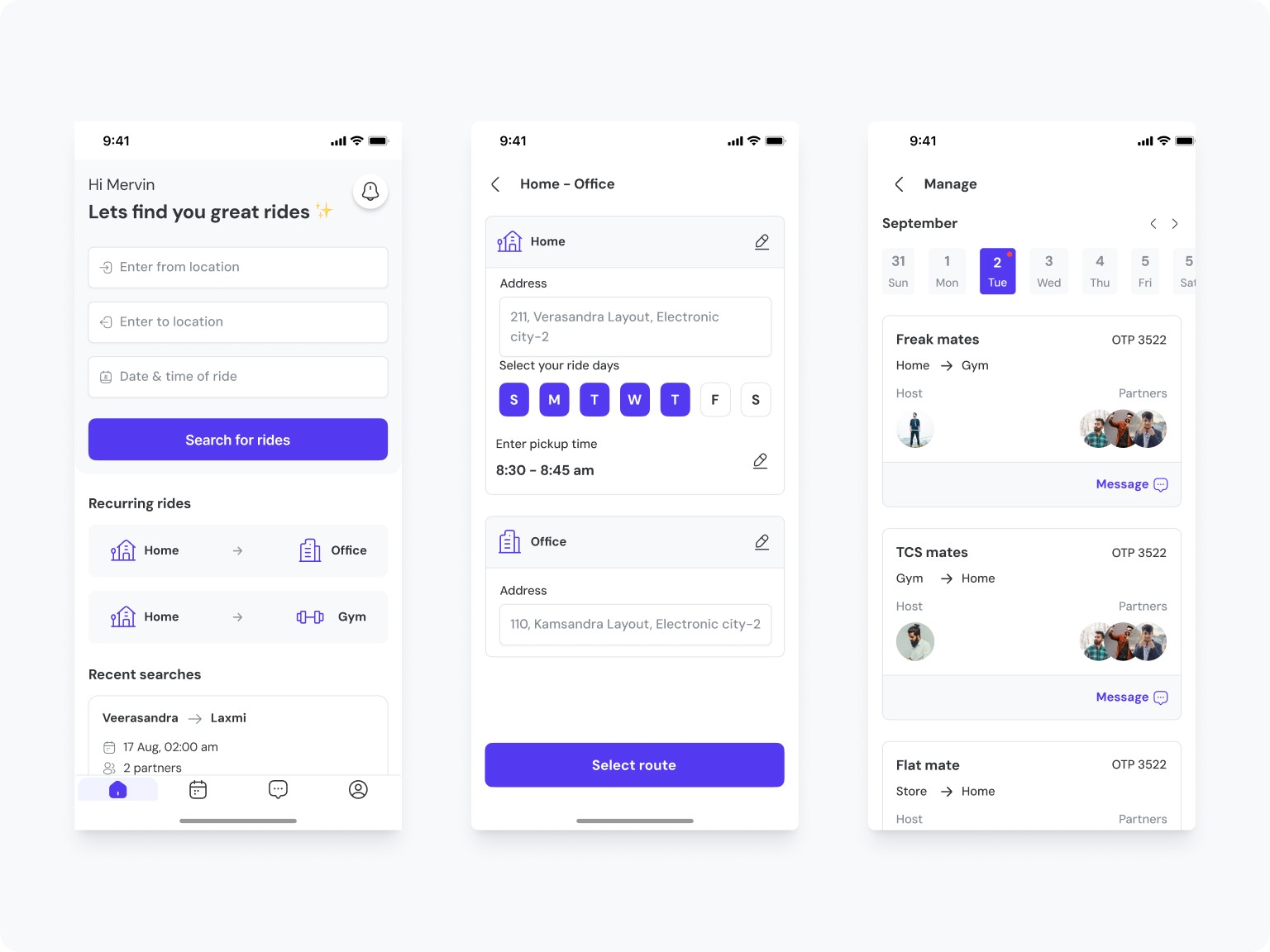 You can effortlessly schedule usual commutes in advance with our recurring rides feature. Simply enter the date, location, and time, and you're ready to go.