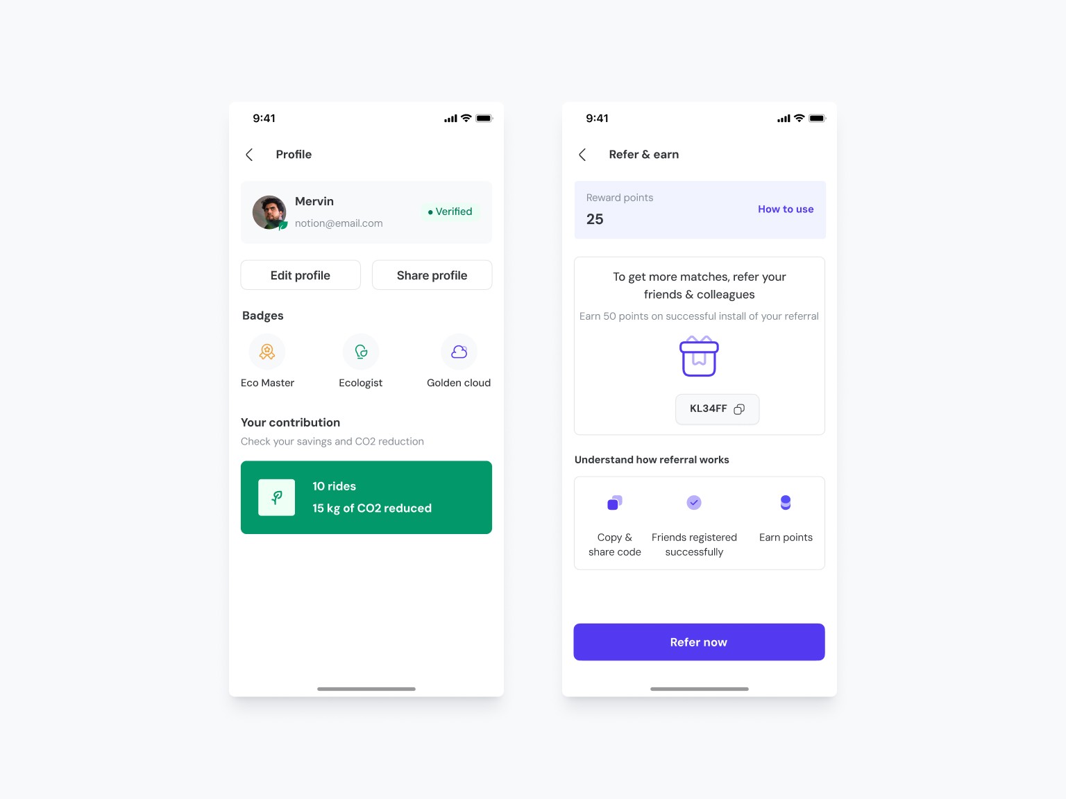 Gamify your commute, celebrate your achievements, and inspire others. I made badges based on the number of rides you have completed. But isn't just a badge, it's a step towards a greener planet. We're turning carpooling into an engaging game, and you're the hero.